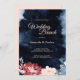 This Starry Night Floral wedding brunch invitation inspires either a midnight summer theme or a dark winter of snow theme, making it a seasonally versatile design. The navy blue, almost black, watercolor with a celestial star or snowflake filled sky, combined with the pop of minimal pink flowers and calligraphy is sure to speak to the magic of your marriage celebration, regardless of the time of year.