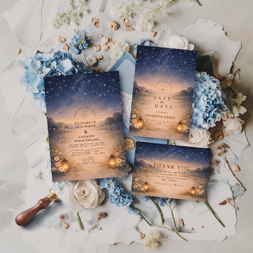Convite Starry Night Rustic Meadow Wedding