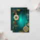 Joias, relógio de ouro com uma corrente de ouro e teclas num fundo textural verde. Estilo Steampunk.