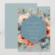 Embrace a romantic and artistic aesthetic with this elegant design, featuring a sophisticated palette of steel blue, soft peach, and warm coral tones. Lush, painterly peonies and delicate anemones bloom alongside sprigs of greenery, creating a rich botanical arrangement. The beautiful floral artwork on a muted background evokes a feeling of timeless elegance for your special day.