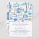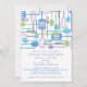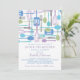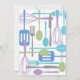 Os instrumentos de estilo retrô para cozinhar e alimentação são apresentados neste maravilhoso convite para um Chá de panela "estocar a cozinha" para a futura noiva. O esquema de cores é divertido e neutro com garfos, colheres, facas, espátulas e uísques em tons de legal cores de roxo, turquesa, azul, verde e carvão; Tudo colocado sobre um fundo branco nítido.