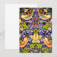 Cartão com ladrão de morangos de design têxtil de William Morris (1883). Quatro pássaros coloridos roubam morangos em meio a uma floração vibrante. Um presente maravilhoso para amantes de os animais e entusiastas de arte vitorianos.