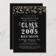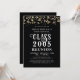 Convite Streamers Black Dourado Confetti de Reunião de Cla