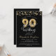 Convite de aniversário moderno e festivo com o título Você é Convidado para uma festa 90 anos NO FAZER em tipografia de script de caligrafia e números falsos metálicos de balões de ouro e galerias de ouro e confetes e luzes brancas na sua escolha de cor de fundo (mostradas a preto). ASSISTÊNCIA: Para obter ajuda com a modificação ou personalização do design, alteração de cor, transferência do design para outro produto ou se você quiser coordenar itens, entre em contato com o designer ANTES de fazer o pedido via Chat Zazzle ou email makeitaboutyoustore@gmail.com.