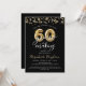 Convite de aniversário moderno e festivo 60º com o título Você é Convidado a uma Festa 60 ANOS NO FAZER em tipografia de escrita de caligrafia e números falsos metálicos de balões de ouro e galerias de ouro e confete e luzes brancas na sua escolha de cor de fundo (mostrada a preto). ASSISTÊNCIA: Para obter ajuda com a modificação ou personalização do design, alteração de cor, transferência do design para outro produto ou se você quiser coordenar itens, entre em contato com o designer ANTES de fazer o pedido via Chat Zazzle ou email makeitaboutyoustore@gmail.com.