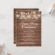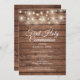 Um convite rápido para a primeira comunhão, com luzes bonito de cordas e seus detalhes personalizados especiais, definidos em tipografia quic em um fundo de painéis de madeira. Projetado por Thisnotme©
