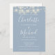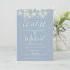 Com luzes bonito de cordas e nomes de estilo de assinatura, este elegante convite de casamento azul empoeirado pode ser personalizado com todas as suas informações especiais sobre o dia do casamento na frente, seus detalhes do site do casamento e seu código QR no verso. Projetado por Thisnotme©