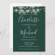 Apresentando bonito luzes de cordas e nomes de estilo de assinatura, este elegante convite de casamento verde esmeralda pode ser personalizado com todas as suas informações especiais sobre o dia do casamento na frente, seus detalhes do site do casamento e seu código QR no verso. Projetado por Thisnotme©