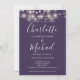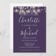 Com luzes bonito de cordas e nomes de estilo de assinatura, este elegante convite de casamento roxo pode ser personalizado com todas as suas informações especiais sobre o dia do casamento na frente, seus detalhes do site do casamento e seu código QR no verso. Projetado por Thisnotme©