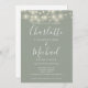 Com luzes bonito de cordas e nomes de estilo de assinatura, este elegante convite de casamento verde de sábio pode ser personalizado com todas as suas informações especiais sobre o dia do casamento na frente, seus detalhes do site do casamento e seu código QR no verso. Projetado por Thisnotme©