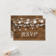 Uma lindíssima madeira e um lugar rústicos com uma corda de luzes bonito e brilhantes design para estes cartões rsvp de casamento que você personaliza para seu próximo dia mágico.