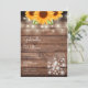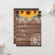 Um convite de casamento na moda rústico com flores de sol bonito, luzes de cordas e frascos-pedras. Os nomes dos casais felizes são colocados em um roteiro elegante acima dos detalhes especiais do casamento em um fundo de madeira rústica. O reverso apresenta as iniciais do seu monograma num girassol correspondente. Projetado por Thisnotme©