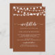 Esta corda ilumina o terracotta que ainda fazemos como convite de renovação é perfeito para uma cerimônia de renovação e celebração rustica de votos. A design apresenta belas luzes de cordas pintadas manualmente em um fundo de terracota.