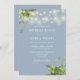 Este elegante eucalipto verde de corda botânica acende poeirento convite de casamento azul pode ser personalizado com suas informações em tipografia quic com seu website de casamento Código QR no verso. Projetado por Thisnotme©
