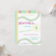 Um belo e moderno Pastel Rainbow Invite perfeito para o feixe de luz do seu dia especial. Este design de convite oferece uma opção de texto personalizada com cores e fontes divertidas brilhantes com detalhes de arco-íris ondulados.
