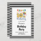 Convite Stripes Pretas/Brancas com 10ª Festa de aniversári