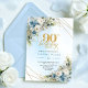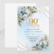 Convite Stunning Boho Dusty Blue Floral Gold 90th Birthday