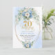 Convite Stylish Boho Blue Gold Floral 70th Birthday Invite