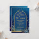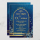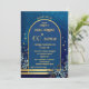 Convite Stylish Classic Blue Gold Floral Birthday
