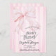 Convite Stylish Pink Bow Pink Striped Baby Shower