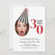 Um convite de aniversário exclusivamente divertido e caprichoso com uma foto do celebrante do aniversário vestindo um chapéu de festa listrado preto e branco com fitas vermelhas. Para personalizar este convite com a sua foto, não se esqueça de recortar cuidadosamente o seu rosto em um quadrado e carregar no lugar da imagem de exemplo mostrada no design. Todo o texto, incluindo a idade em números vermelhos proeminentes, pode ser personalizado com suas informações.