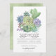 Fontes únicas, suculentos coloridos de aquarelas e fundos brilhantes em um primavera verde macio são os destaques desses produtos de casamento misturados e combinados. Este cartão 'Salvar a Data' do casamento fornece uma modelo para adicionar seus próprios nomes, data do casamento e mensagem. Um padrão brilhante e texturizado, em tons claros e escuros de verde primavera, adiciona um fundo contrastante no reverso. Procure ID515 para ver todos os produtos correspondentes neste conjunto.