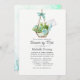 Convite de chá de noiva por correio à distância com plantas suculentas de cacto do deserto floral em aquarela azul menta trendy com tipografia de escrita à mão elegante.