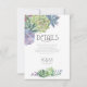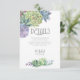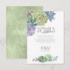 Fontes únicas, suculentas coloridas em aquarela e fundos cintilantes em um suave tom verde primavera são os destaques destes produtos de casamento para combinar como quiser. Este belo cartão de inserção de detalhes de casamento tem um modelo para editar as informações pertinentes para os seus convidados e as iniciais do noivo e da noiva e a data do casamento. Um padrão brilhante e texturizado, em tons claros e escuros de verde primavera, adiciona um fundo contrastante no verso. Procure por ID515 para ver todos os produtos correspondentes deste conjunto.
