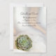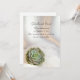 Faça um tom elegante para sua cerimônia de casamento e recepção com o bonito Suculento Verde no Casamento de Satin Branco Salve o Anúncio de Data. Esta típica nupcial botânica conserva o cartão de anúncio de data com uma fotografia floral digitalmente pintada de uma planta suculenta verde com um véu branco e fundo branco de cetim. Disponível como um convite impresso para envio por correio ou como um download digital para fácil compartilhamento digital online.