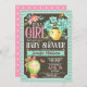 Suculentos, convite para chá de fraldas do Jardim de Garota Cactus. Apresenta cores verde e cor-de-rosa.