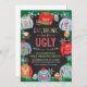 Beba e seja feio na sua próxima festa de suéter feia! Este convite é a forma perfeita de convidar convidados para o seu feriado ou festa de aniversário de Natal Ugly Sweater. Isto é divertido, convite de festas perfeito para qualquer idade! Uma variedade de suéteres feios enquadram o convite com canecas de Natal e holly contra um fundo de quadro.
