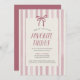 Gather your favorite people to celebrate your favorite finds with this elegant “Favorite Things” invitation from Redwood & Vine Design Co. Designed with blush pink and cream stripes, plum lettering, and a simple bow detail at the top, this invitation exudes cheerful sophistication. Ideal for holiday brunches, seasonal gift exchanges, or festive ladies’ nights, it’s a stylish way to invite friends to a memorable celebration.