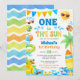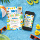 💦☀️ Make waves with this bright and playful “One in the Sun” Pool Party Birthday Invitation — perfect for celebrating your little guy’s first birthday in fun, sunny style! Featuring cheerful watercolor beach elements like rubber ducks, shark and duck pool floats, palm trees, a smiling sun, and colorful bunting, this design is bursting with vibrant summer colors including aqua blue, sky blue, leafy green, sunshine yellow, and bright orange.