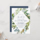 Este verão, um belo e verde raio de diamante e ver o convite é perfeito para uma elegante festa de meio-verão. O design botânico apresenta um arranjo exuberante de cor d'água pintada, eucalipto, verde e folhas verdes com sutis manchas de flores rosadas e cor-de-rosa.