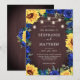 Estes convites de casamento apresentam uma borda floral de aquarelas, flores azuis e rosas e folhagem em um fundo de madeira com luzes brilhantes de jarro de pedras. Personalize-os com o seu próprio texto. Visite nossa loja para ver o cheio de itens que você pode personalizar para o seu casamento.