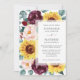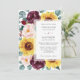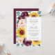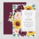 Estes elegantes convites para o casamento apresentam um design floral de aquarela moderno com girassóis, rosas de burgundy e blush com folhagem de folha de eucalipto. Personalize com seu texto. Os produtos de suíte de casamento também estão disponíveis.