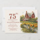 75º convite de aniversário para mulheres com pintura de uma antiga fazenda e um campo de girassóis. Entre em contato comigo para obter assistência com suas personalizações ou para solicitar outros produtos Zazzle correspondentes ou coordenadores para o seu partido.