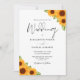 Este elegante convite para casamento floral de girassóis pode ser personalizado com suas informações em tipografia quic com seus detalhes no site de casamento e seu código QR no verso. Projetado por Thisnotme©