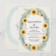 This elegant watercolor design features a soft blue oval wreath adorned with hand-painted sunflowers, delicate greenery, and pastel florals. The warm yellow blooms create a romantic rustic feel inspired by countryside weddings and late-summer celebrations. With graceful typography and a balanced floral composition, this design is perfect for couples seeking a timeless, nature-inspired wedding aesthetic that feels both charming and refined.