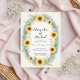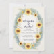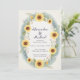 This elegant watercolor design features a soft blue oval wreath adorned with hand-painted sunflowers, delicate greenery, and pastel florals. The warm yellow blooms create a romantic rustic feel inspired by countryside weddings and late-summer celebrations. With graceful typography and a balanced floral composition, this design is perfect for couples seeking a timeless, nature-inspired wedding aesthetic that feels both charming and refined.