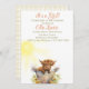 Adorável convite para chá de fraldas de vaca em terras altas. Edite facilmente com seus detalhes pessoais.