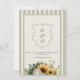 This sunflower wedding invitation suite blends rustic charm with refined elegance, creating the perfect first impression for a romantic countryside or garden celebration. Featuring a lush arrangement of golden sunflowers, delicate white florals, and soft greenery, this floral wedding invitation captures the warmth and joy of a summer or fall wedding. The natural botanical design paired with a muted sage green striped border and soft ivory background gives this invitation a timeless yet modern aesthetic that feels both inviting and elevated. The warm earthy color palette and organic floral details make this invitation ideal for sunflower weddings, rustic chic themes, barn weddings, vineyard celebrations, and elegant outdoor ceremonies.