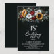 Convite Sunflower Rose Floral Black 18th Birthday Party