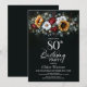 Convite Sunflower Rose Floral Black 80th Birthday Party