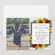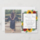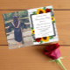 Design features elegant sunflowers, roses, and wildflowers with a golden yellow, red and gray fall color palette. Design also features a charcoal gray frame against a rustic wood background. Photo template via Pixabay licensed under CC0 and must be replaced with your own photo