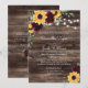 Create a warm and unforgettable first impression with this rustic sunflower and burgundy rose wedding invitation, designed to capture the beauty of a romantic countryside celebration. Featuring a rich woodgrain background accented with soft string lights and vibrant floral arrangements, this invitation perfectly blends natural charm with elegant detail.