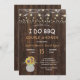 Design chic exclusivo para um convite para o Chá do Casal I DO, com CHURRASCO de água e flores solares em um vaso, belas luzes de cordas em um celeiro antigo. Use a ferramenta Personalizar para adicionar suas informações. Para obter itens correspondentes, consulte minha Coleção de Madeira das Luzes de Cordas de Sol.