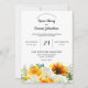 Get your guests in the mood for happiness and sunshine with this sunflower and white rose floral, country wedding invitation.