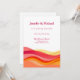Inspired by golden-hour skies and flowing coastal horizons, this modern abstract design features rich sunset tones of coral, pink, yellow, and warm orange—perfect for summer, beach, destination, and resort weddings. The clean typography balances the vibrant artwork, creating a sophisticated yet joyful look that feels fresh and on-trend for 2026 weddings.