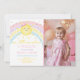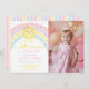 Este adorável design apresenta um sol com um arco-íris colorido pastel e um confete de brilho dourado sujo.